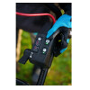 Большая П-образная рукоятка позволяет управлять инструментом любой рукой. Складная рукоятка и отливы со стороны травосборника обеспечивает вертикальное хранение в зимний период.