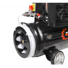 Есть возможность подключения дополнительного ресивера, удобная кнопка перезапуска. Масляное окно имеет металлическую оправу. Увеличенное количество витков на электродвигателе для увеличения надежности. Поршневая голова имеет увеличенный масляный картер для лучшего теплоотвода от цилиндра компрессора. Два воздушных выхода с быстросъемами.