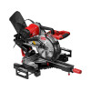 Модель идеально подходит для сложных, комбинированных резов. За счет ременного привода двигатель вынесен назад, что позволяет пильной голове наклоняться как влево, так и вправо от 0° до 45°. Ровная литая станина с ребрами жесткости оснащена поворотным столом, регулируемым в обе стороны от 0° до 45°. Так же есть функция быстрой фиксации поворотного стола, а для работы с длинными заготовками имеются расширители. Механизм протяжки выполнен с расчетом на компактность общей конструкции и возможность работать в ограниченных пространствах. В этой модели используются не выдвижные, а фиксированные штанги, по которым движется каретка с пильной головой. Это позволяет поставить пилу в углу или вплотную к стене, при этом оставлять пространство под вылет штанг назад не придется. Пила отлично подходит для работы с широкими заготовками, максимальные параметры реза под прямым углом составляют 320х85 мм. Скольжение каретки по штангам плавное и без люфтов, что обеспечено за счет 4-х линейных подшипников в конструкции протяжки. Пила имеет хорошую систему пылеудаления, под кожухом установлен специальный желоб, направляющий воздушный поток вместе с древесной стружкой в направлении патрубка либо в пылесборный мешок, либо в пылесос при его подключении. В комплекте идёт пильный диск диаметром 255 мм на 48 зубов с твердосплавными напайками, подходящий для любых видов древесины.